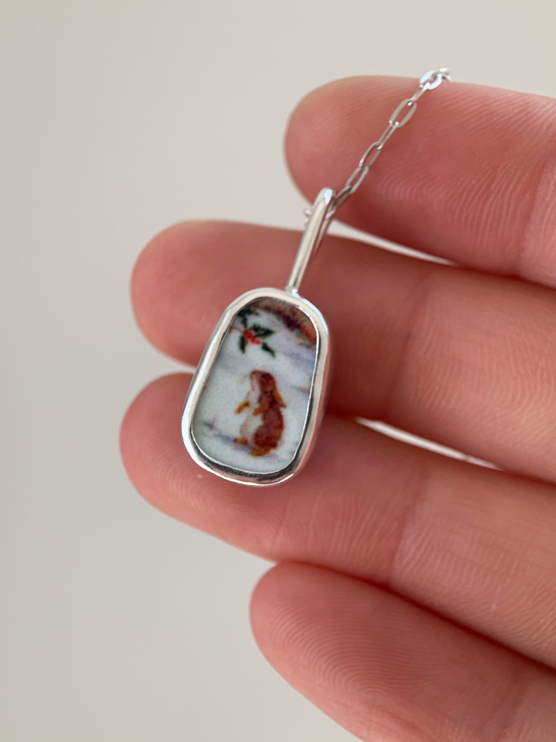 This pendant charm is bezel-set in fine + sterling silver (open-back) - comes dangling on a 16-inch chain.